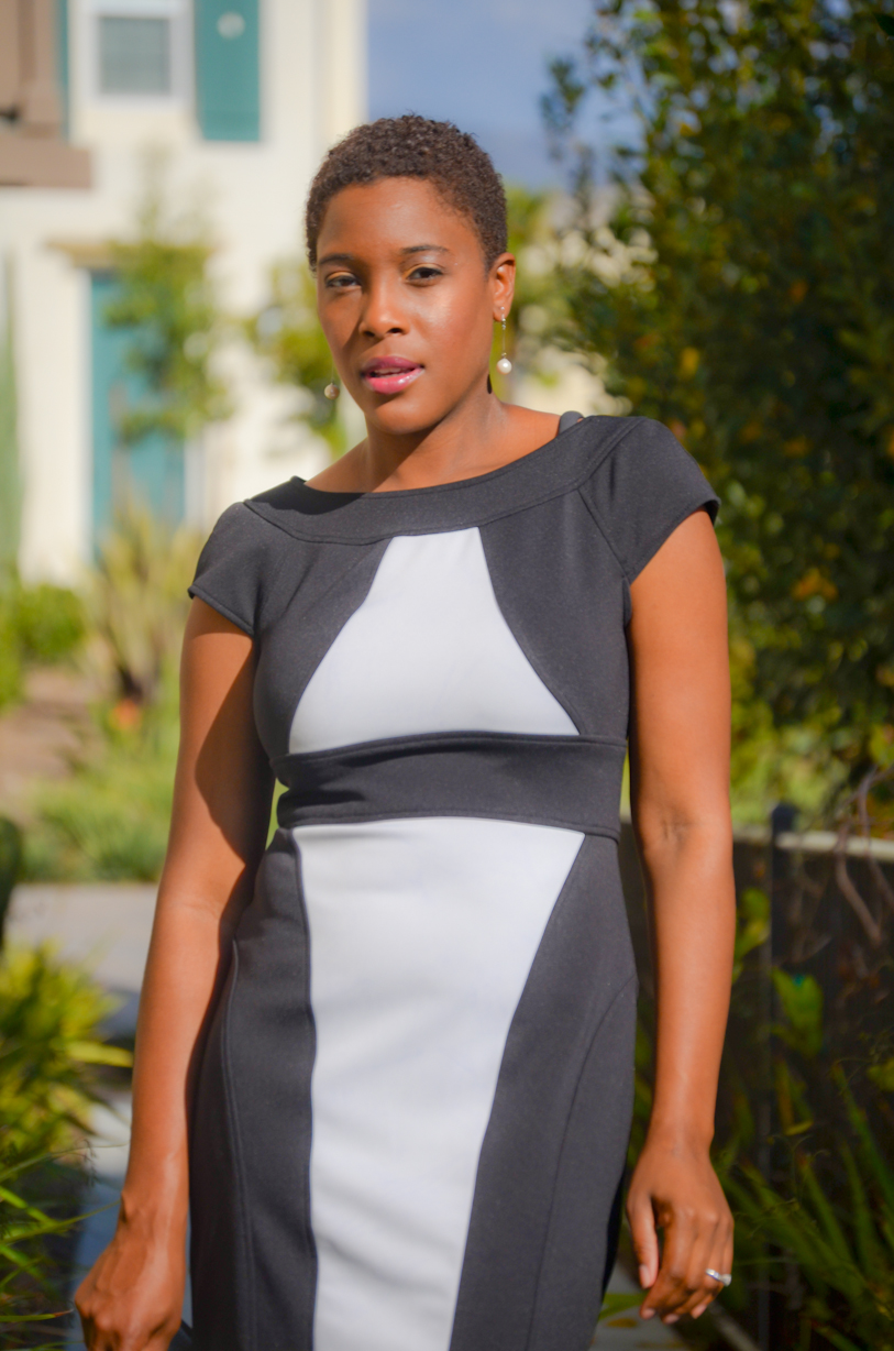 Both of your color-blocked black+white sheath dresses are gorgeous. You can never go wrong with a sheath or with a B+W pairing.