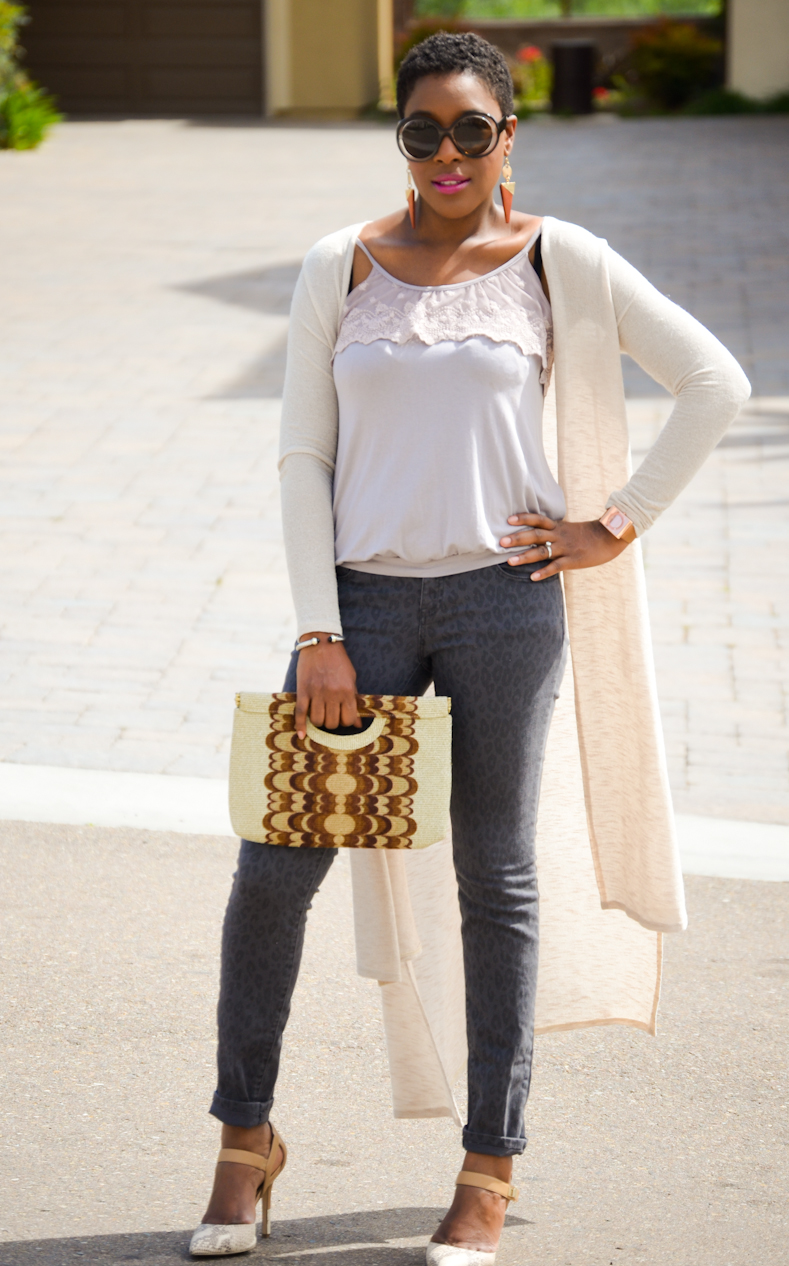 Simply amazing! I love everthing form head to toe, but the clutch got to be my favorite! I have a thing for long cardigan! I think they’re unexpected and elegant.