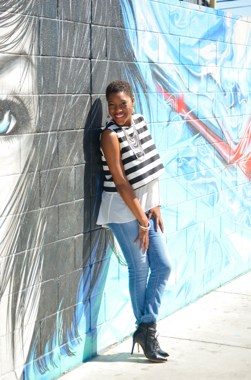This is a great look! Love the double layering, the striped top is so neat and the shoes are just fabulous.